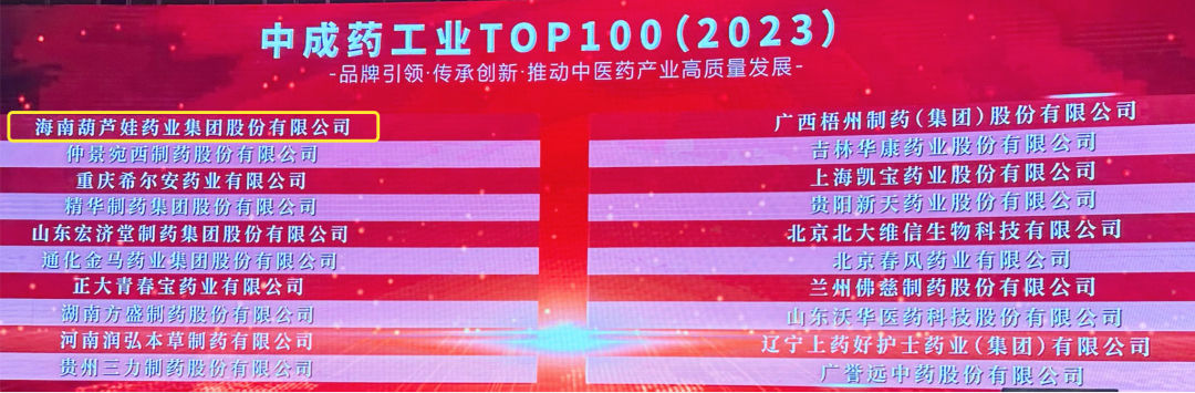 会上,还发布了“2023中成药工业TOP100”榜单,918博天堂药业集团荣耀上榜。